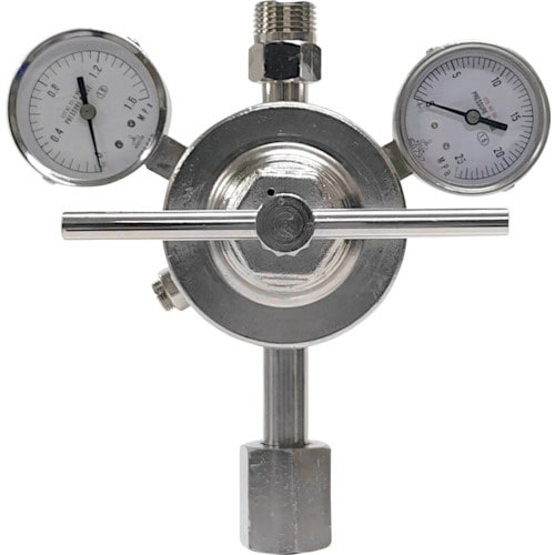 各種ガス供給設備、装置に幅広く対応します。SUS製の圧力計カバーを採用し、圧力計からのサビの発生を抑えました。フィルターを内蔵し、内部リークを低減しました。ガスの入口方向が選択可能です。工場配管用。 |