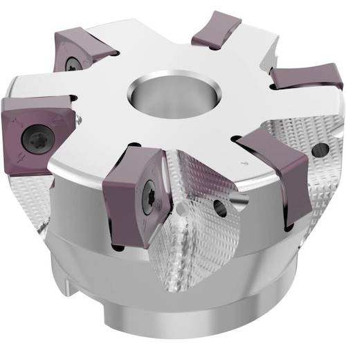 経済的な両面8コーナーインサートを備え、高い切込み深さを提供するフェースミルです。