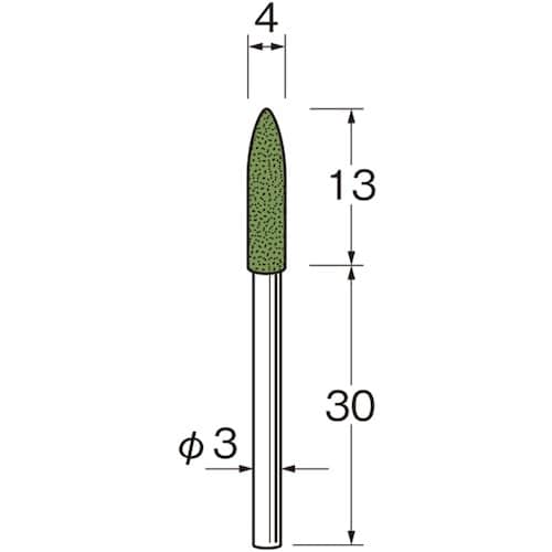 粒度(#):220 | 軸径(mm):3 | 軸長(mm):30 | 最高使用回転数(rpm):30000 | その他仕様:多種類の形状と粒度を揃えま…