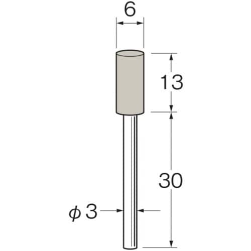 粒度(#):800 | 外径(mm):6 | 幅(mm):13 | 軸径(mm):3 | 軸長(mm):30 | 最高使用回転数(rpm):30000…