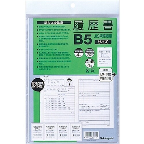 ナカバヤシ 履歴書B5/写真貼付シ−ル付