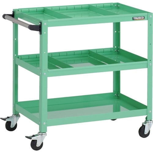 TRUSCO ツールワゴン ラビットワゴン 700X450XH740 3段 仕切板2段付 ハンドル付 ゴム車輪 ヤンググリーン RBW773S2HYG 1台