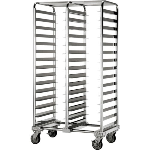 トレーや樹脂コンテナなどの容器を多段階に収納し運搬・保管ができます。