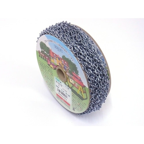 リンクの一方を90度ひねった鎖です。未溶接のため、扱いやすく、安価です。リールに巻いている製品のため、使用時に絡まりにくいです。軽量物の吊り下げ等に。