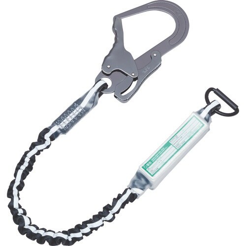 第1種ショックアブソーバ付き伸縮式じゃばらランヤードです。構造物側は剣スチールフックを採用しています。体躯側 D環を採用しています。2m以上の高所作業者に。