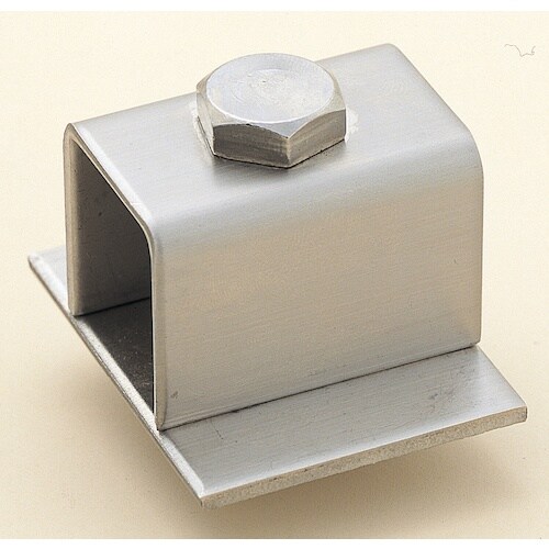 単車・複車の当たり止です。SUS304ステンレス製で耐食性、加工性、溶接製に優れています。トラックレール(ハンガーレール)の内溝にネジで止め、戸当りとして用います。 |