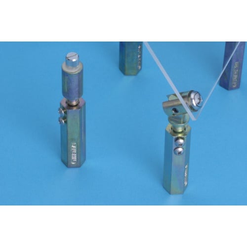 大型の盤も1人で取付けができ、取付後の脱着も容易にできます。作業中の扉はロックピンにより、閉じることはありません。支柱の高さ調整は、5mm単位でできます。分電盤の保護扉用ヒンジ付支柱です。 |