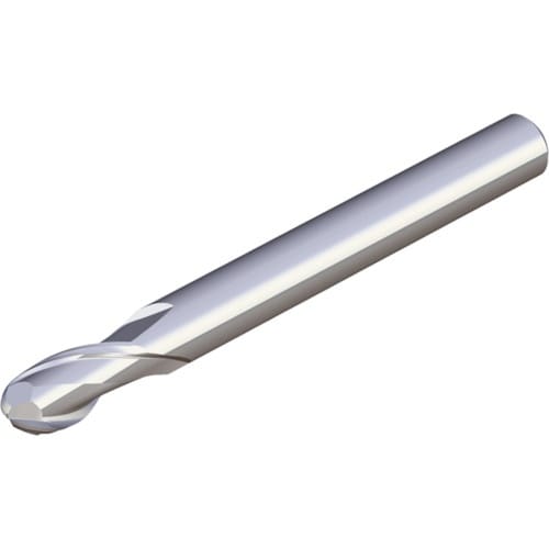鋼・アルミ合金・非鉄金属の汎用加工に適しています。超微粒子超硬母材です。2枚刃、ボールエンドミル(ミディアムタイプ)です。汎用。 |