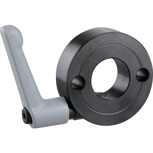特殊形状のクサビにより少ない力で締め付けが可能なクサビカラーです。クランプレバー付のため、工具なしで簡単に締め付けができます。2穴付のためブラケットの取り付けや、セットカラーの固定ができます。 |
