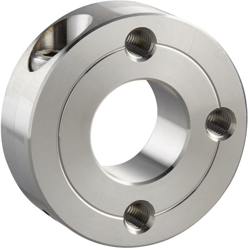 特殊形状のクサビにより少ない力で締め付けが可能なクサビカラーです。3ネジ穴付のためブラケットの取り付けや、セットカラーの固定ができます。標準品にないサイズも特注対応します。ベアリングとシャフトの固定。 |