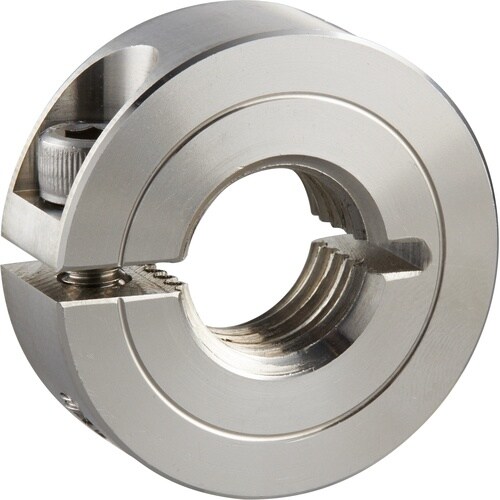 締結力の強いスタンダードスリットカラーです。面で締め付けるため締結力が強く、シャフトに傷が付きにくいタイプです。ネジシャフト(並目)にご使用いただけます。