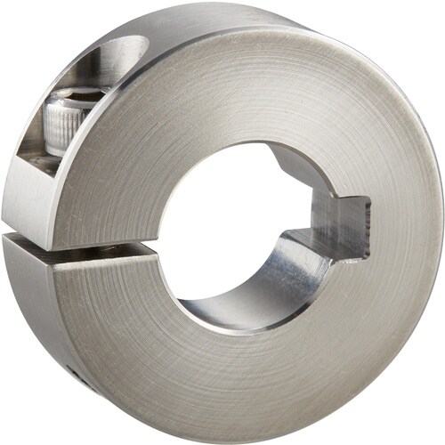 締結力の強いスタンダードスリットカラーです。面で締め付けるため締結力が強く、シャフトに傷が付きにくいタイプです。キーを逃がす構造になっているため、キーが付いている所にも取り付けができます。 |