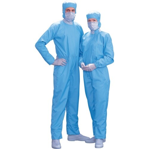 サイドファスナーと二重袖、二重裾により塵埃の漏洩を抑止します。発塵性・制電性に優れた素材とデザインにより、発塵対策、静電気対策、着用感にも優れたクリーンスーツです。 |
