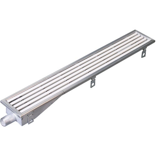 水の浸入を抑え、床洗浄時の排水を行うための水切りユニットです。スリット蓋は、素肌にやさしく滑り止め効果のある表面素材の樹脂製です。すきま6mmの細目タイプで、車椅子での通過もスムーズです。 |