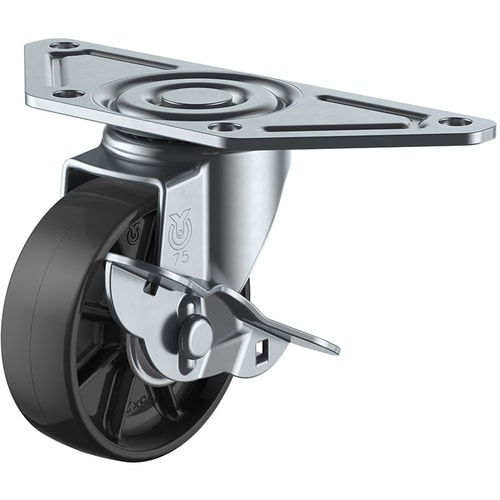 走行性・耐荷重を備えた標準的な小型キャスターです。様々なコーナーへの取付に適しています。耐摩耗性に優れたナイロン車輪を使用しています。台車や家具、什器などに。 |