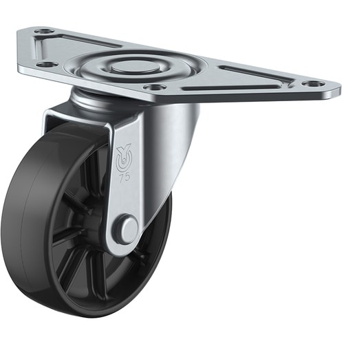 走行性・耐荷重を備えた標準的な小型キャスターです。様々なコーナーへの取付に適しています。耐摩耗性に優れたナイロン車輪を使用しています。台車や家具、什器などに。 |