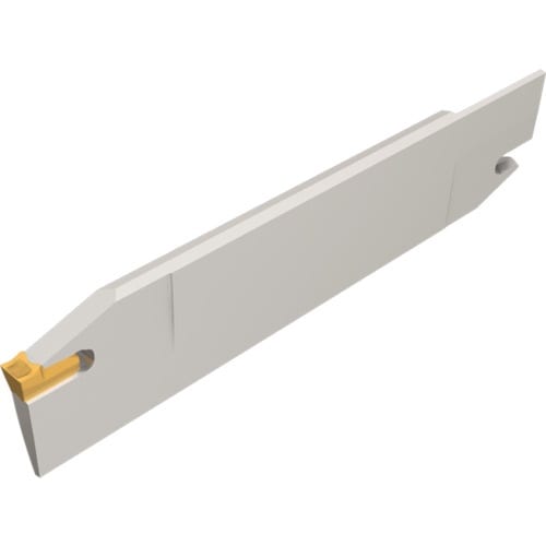 1コーナー使いで世界初の自己拘束式突切工具です。チップを差し込むだけ、切削力でホルダーに固定されます。補修部品も不要で、チップの交換も容易です。端面溝入れ加工用。