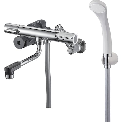 適温キープ:サーモカートリッジの働きで湯水の混合量を自動で調整し、常に一定の温度を保つことが出来ます。クリック機構:切替ハンドルにクリック機構を採用しました。