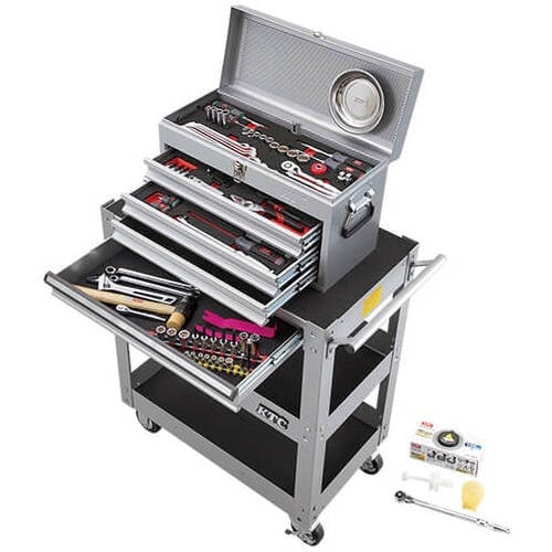 6.3sq.と9.5sq.のソケットレンチが入っています。収納具は新型チェストSKX0223シリーズとワゴンSKX2613シリーズです。 |