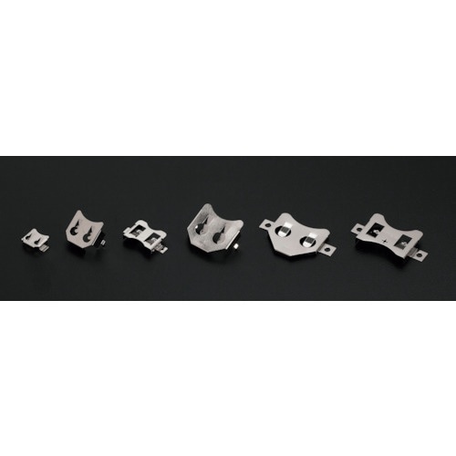 金属製の簡易コイン電池ホルダーです。量産使用時は自動実装機に対応できるキャリアテーピング梱包(TRタイプ)が便利です。 |