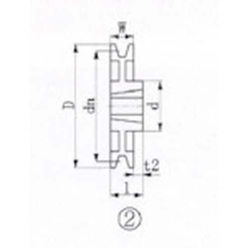 データム径(mm):200 | 溝数:10 | 図面番号:2 | 適用ベルト:B、BX、SPB | 材質・仕上げ:ねずみ鋳鉄 | 単位:1個