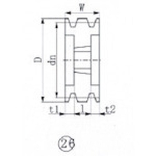 データム径(mm):250 | 溝数:5 | 図面番号:26 | 適用ベルト:C、CX | 材質・仕上げ:ねずみ鋳鉄 | 単位:1個