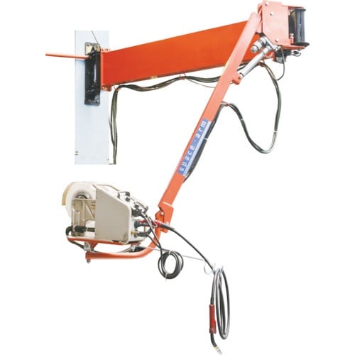 送給装置が常にワークの上に位置するので溶接作業現場が広く使えます。3次元アームの動きで作業面積が拡大します。折りたたんでの収納可能です。送給装置のワイヤ交換が昇降により容易になります。 |