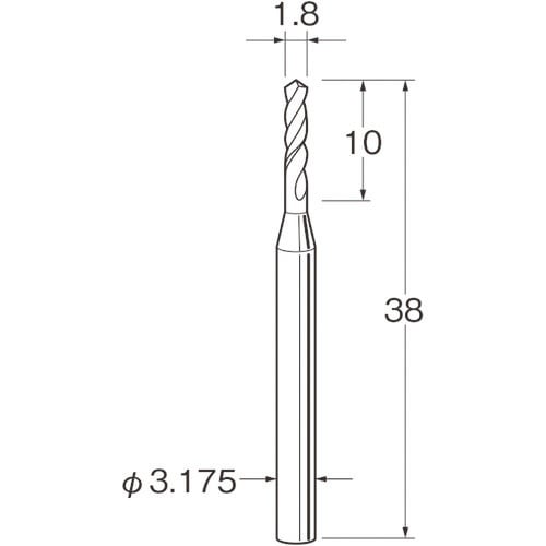 リューター ツイストドリル(超硬合金)刃径(mm):1.8シャンク径(mm):3.175 T3018 1袋(1本)