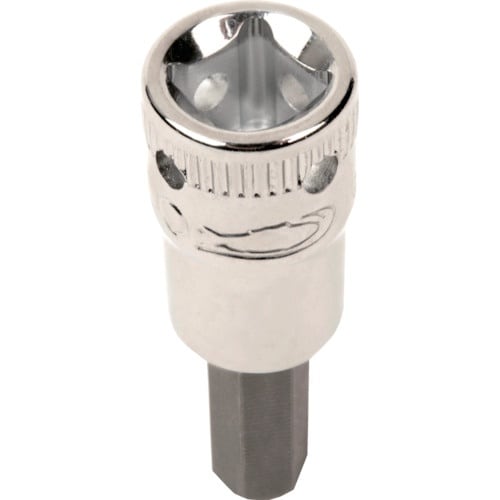 セーフティーロック用の穴が4か所に空いた、高所作業向け1/4ドライブミリサイズヘックスソケットドライバーです。 |