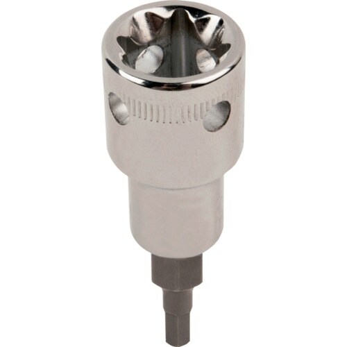セーフティーロック用の穴が4か所に空いた、高所作業向け1/2ドライブヘックスソケットドライバーです。
