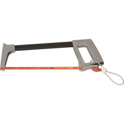 ランヤード用のループが付いた、高所作業向けハンドソーフレームです。懐が深いので大物切断にも対応可能です。直線切と55°角切が可能です。サンドフレックスバイメタルハンドソー24山付です。 |