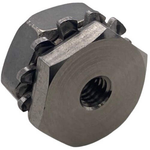 薄い板の丸穴に本品を挟み込むことでネジ加工ができない金属板、木材等にネジ穴を作ることができます。専用工具を使用せず歯付き座金と六角ナットで締め付ける構造です。薄い板へのねじ穴製作に。