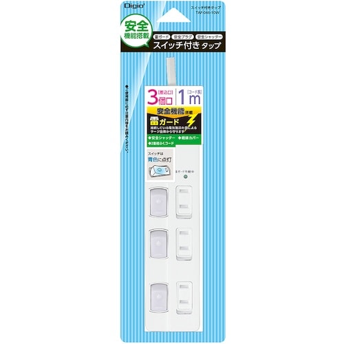 ナカバヤシ ナカバヤシ OAタップ 安全機能搭載スイッチ付OAタップ 3個口 1m ホワイト TAP04610W 1本 A094-7601