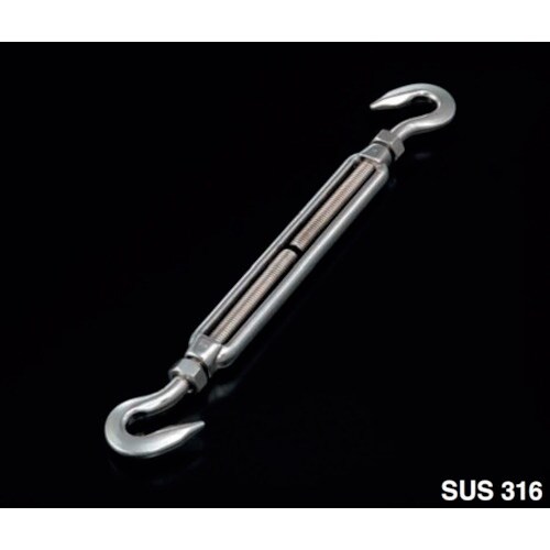 耐食性に優れたSUS316製のターンバックルです。ワイヤロープの張り具合を調整します。