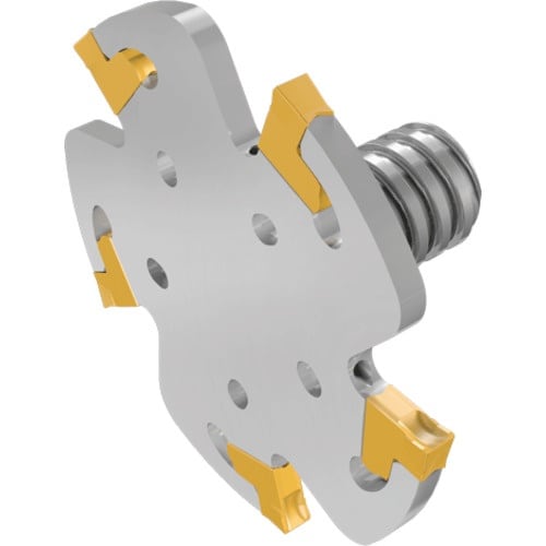 超高剛性、チップ縦置き、自己拘束式タンググリップチップを装着でき、高剛性大径カッターが、ビビリを抑制し、安定した加工性能です。ミーリング加工用。 |