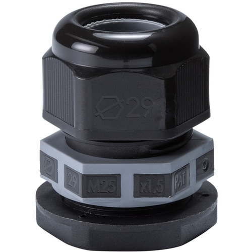 色:ブラック・グレー | 適合電線径(mm):φ14ー17 | 取付穴径(mm):φ25.2 | 単位:1個