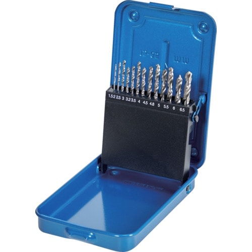 一般穴あけ用のドリルセットです。先端部に喰いつきが良いXシンニング加工を施しております。被削材:軟鋼、一般鋼、鋳鉄、軽合金、アルミ、木材。 |