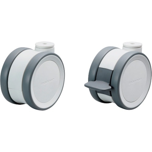 凹凸の少ない形状で清掃のしやすいキャスターです。旋回部と車輪部にベアリングを使用しているため、動きがスムーズで走行音が静かです。 |