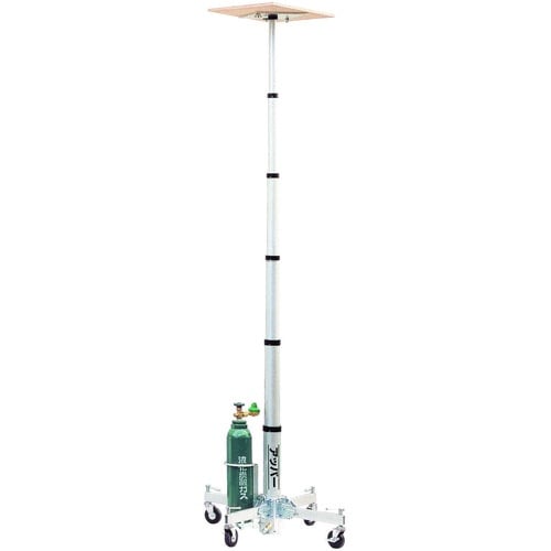 超軽量12kgで現場移動がラクです。電源不要のためどこでも使用でき、ハイスピードで上昇します。三脚式で支点が高いため、作業時の揺れが減少します。キャスターはストッパ付です。 |