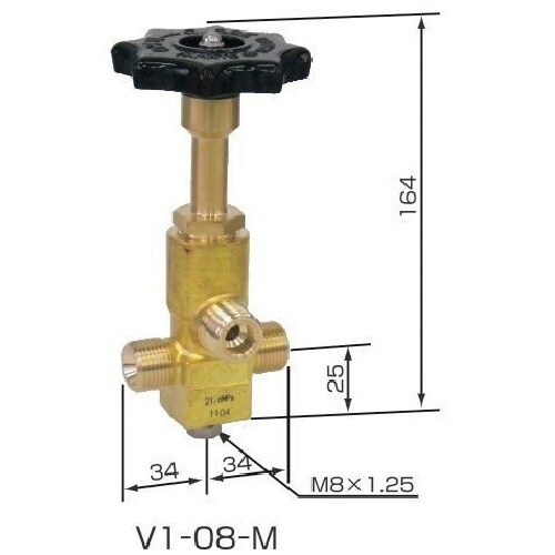 ヤマト産業 YAMATO ネックバルブ 真鍮製  V1−08−M 低温用中軸弁 V108M 1個 A095-7023