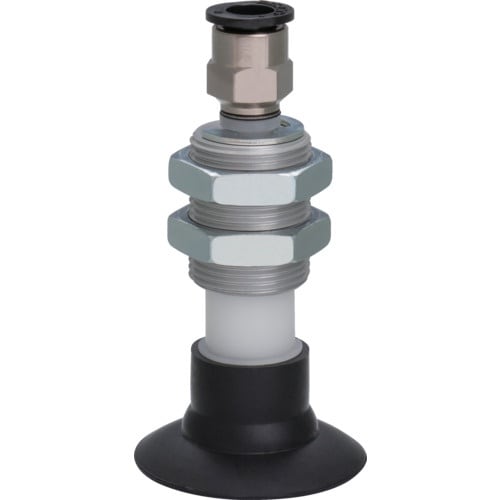 パッド外径(mm):φ8 | タイプ:ソフト | 真空取出口(mm):φ6 | ストローク(mm):9 | ホルダ形状:スプリング式、取出口上、ワンタ…