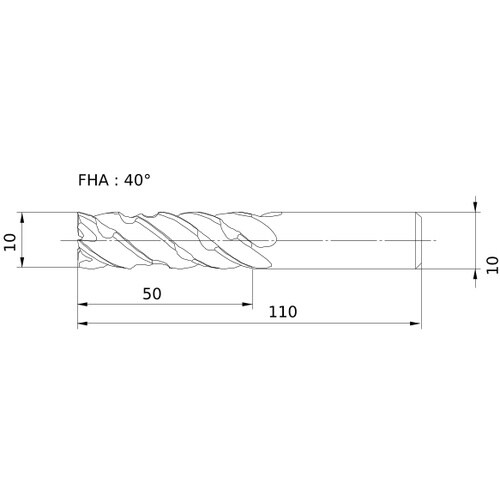 刃数ZEFP(枚):5 | 切削径DC(mm):10 | 最大切込みAPMX(mm):50 | 機能長さLF(mm):110 | マシン側接続径DCO…