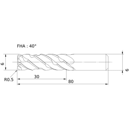 刃数ZEFP(枚):5 | 切削径DC(mm):6 | コーナ半径RE(mm):0.5 | 最大切込みAPMX(mm):30 | 機能長さLF(mm)…