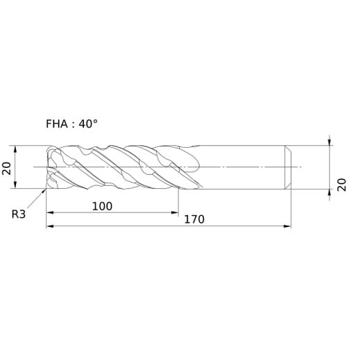 刃数ZEFP(枚):5 | 切削径DC(mm):20 | コーナ半径RE(mm):3 | 最大切込みAPMX(mm):100 | 機能長さLF(mm)…