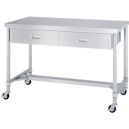 シンコー ステンレス(SUS430)作業台片面引出付H枠キャスター付 φ75ウレタン車 ステンレス金具 600×450×800 WDHC6045800SU75 1台