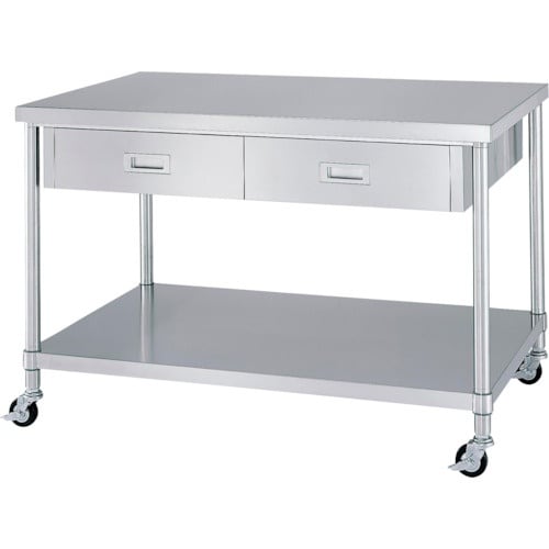 シンコー ステンレス(SUS304)作業台両面引出付ベタ棚板キャスター付 φ75ウレタン車 1800×900×800 WDWBNC18090U75 1台
