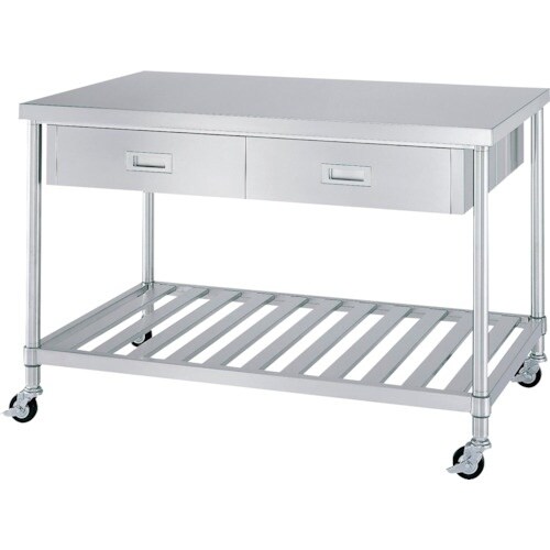 シンコー ステンレス(SUS430)作業台両面引出付スノコ棚板キャスター付 φ100ウレタン車 ステンレス金具 1200×900×800 WDWSC12090800SU100 1台