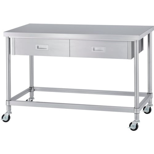 シンコー ステンレス(SUS304)作業台片面引出付四方枠キャスター付 φ100ウレタン車 ステンレス金具 1200×750×800 WDZNC12075800SU100 1台