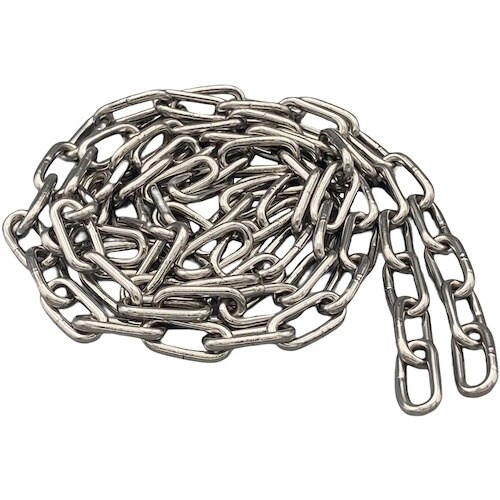 溶接チェーンは切断済みです。オールステンレス製のため、防錆性・耐候性に優れています。転倒防止、進入禁止、境界用の仕切りに。 |