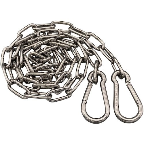 溶接チェーンは切断済み、両側にフックを取り付けています。オールステンレス製のため、防錆性・耐候性に優れています。転倒防止、進入禁止、境界用の仕切りに。
